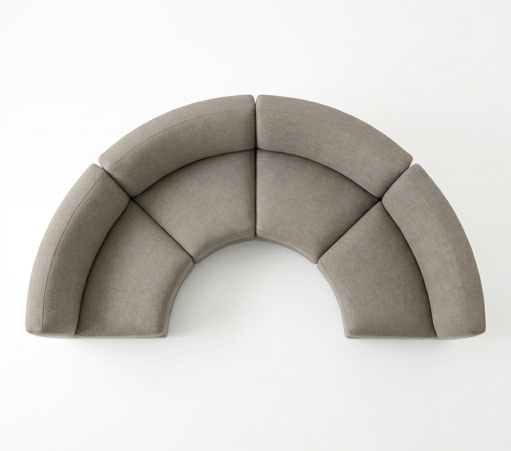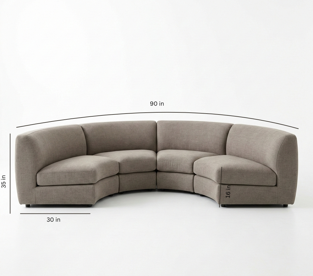 Designer’s Note: The 90-inch arc is ideal for pairing with round or oval coffee tables to maintain the room’s flow and highlight the sofa’s sculptural silhouette.